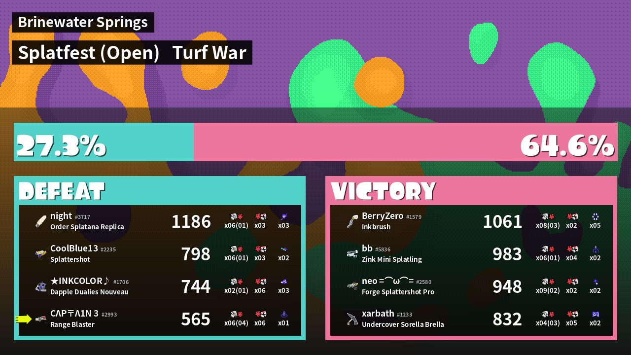| Medals | #1 Overall Splatter #1 Popular Target #1 Super Jump Spot | ||