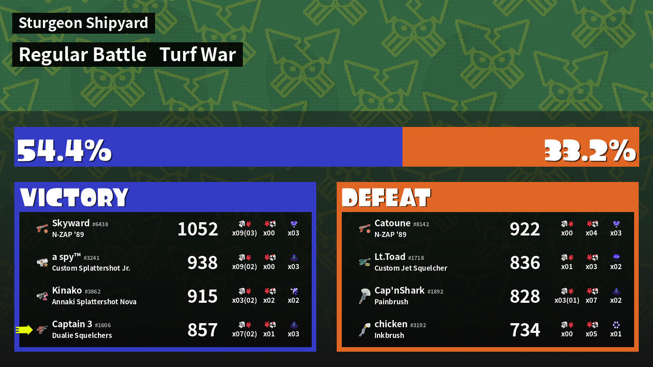 | Mode | Turf War - Regular Battle | ||
