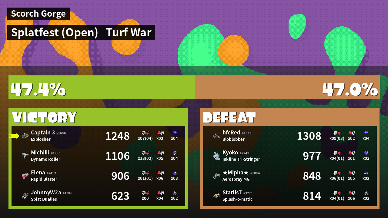 | Medals | #1 Turf Inker #1 Splat Assister #1 Ink Consumer | ||