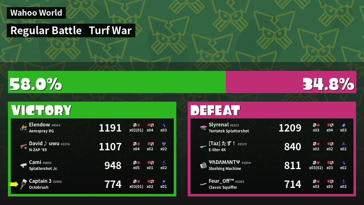 | Medals | #1 Popular Target #1 Splat Assister #1 Ground Traveler | ||