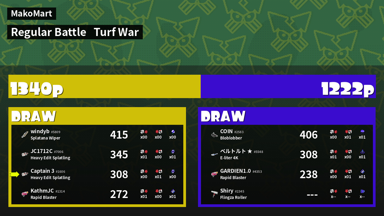 | Mode | Turf War - Regular Battle | ||