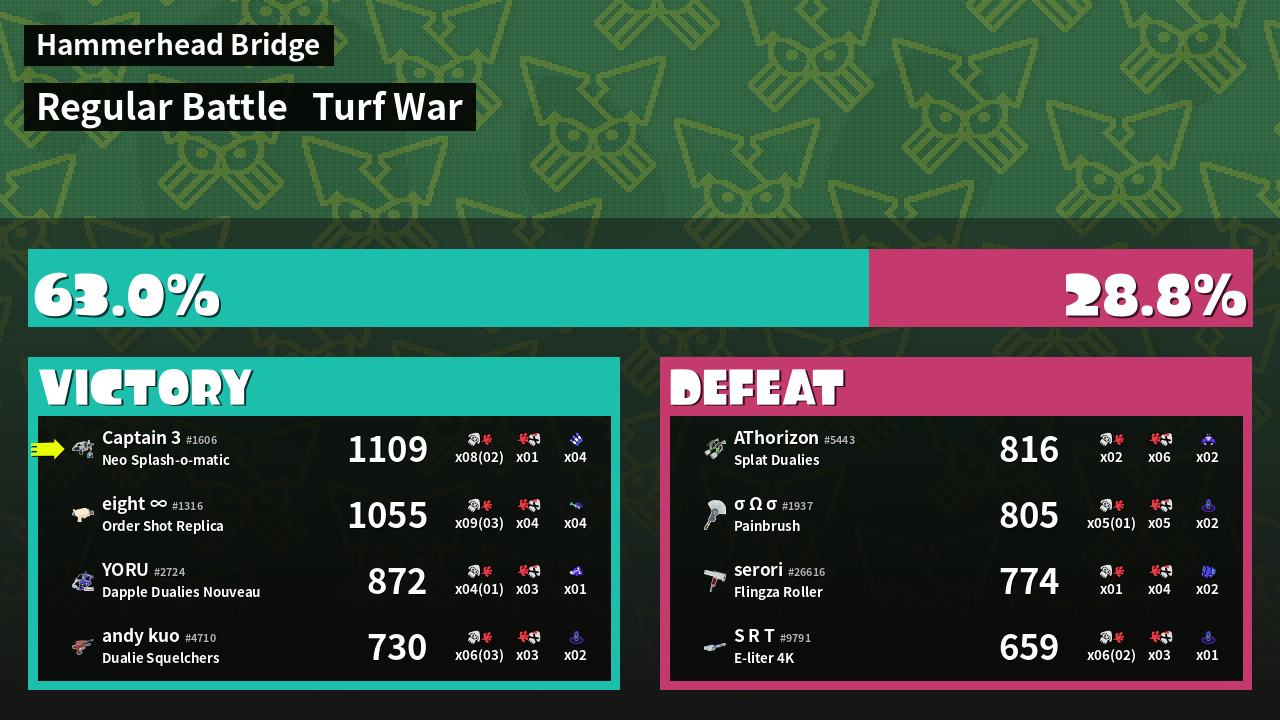 | Medals | #1 Turf Inker #1 Super Jump Spot #1 Enemy Splatter | ||