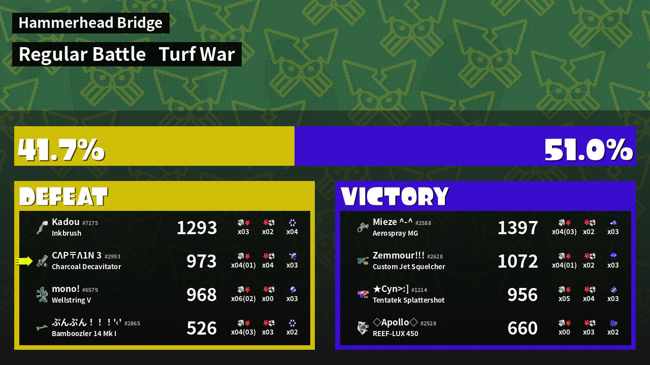 | Medals | #1 Enemy-Base Inker #1 Ground Traveler #2 Overall Splatter | ||