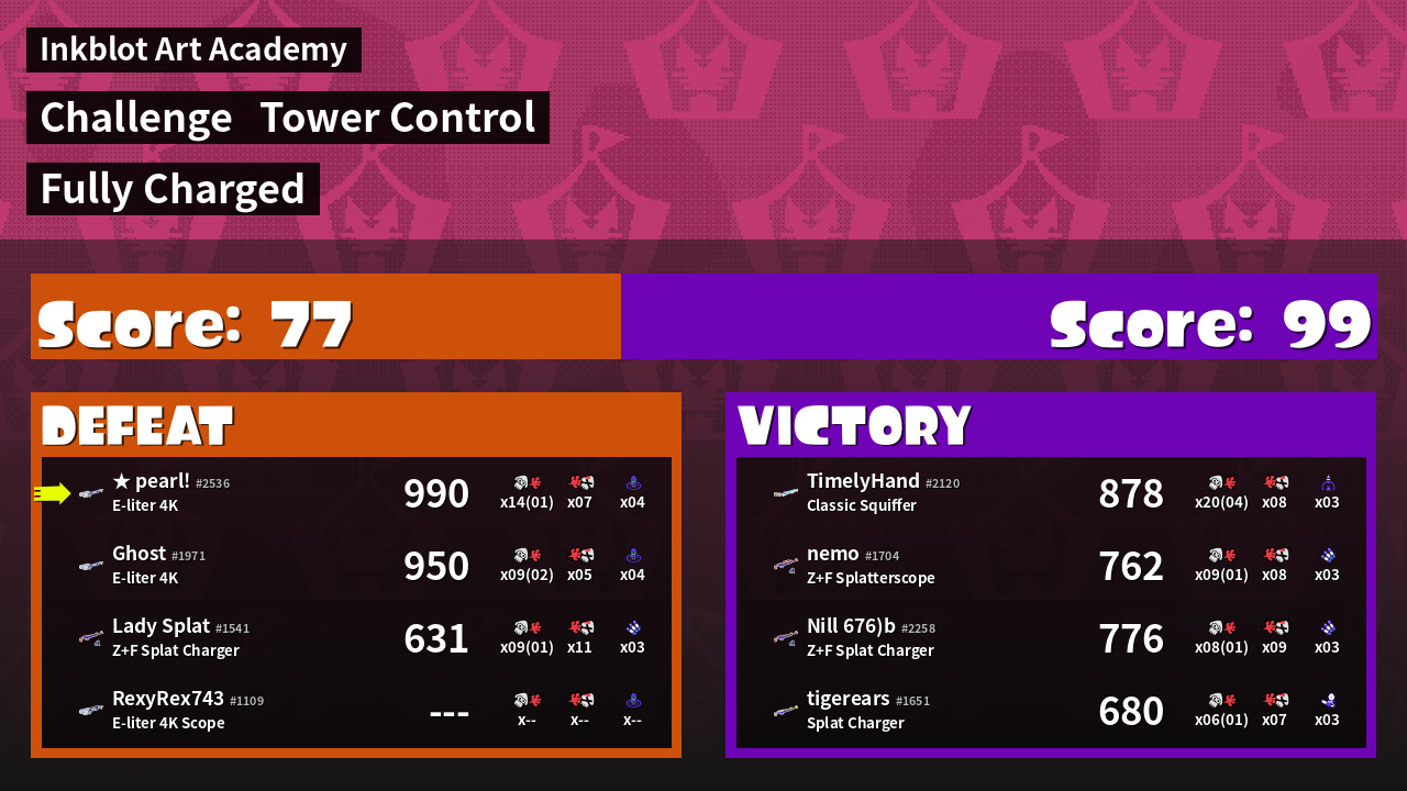 | Medals | #1 Overall Splatter #1 Score Booster Record-Score Setter | ||