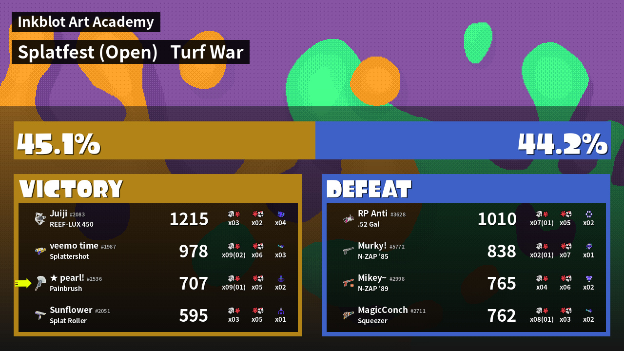 | Medals | #1 Overall Splatter #1 Enemy Splatter #1 Wave Breaker User | ||