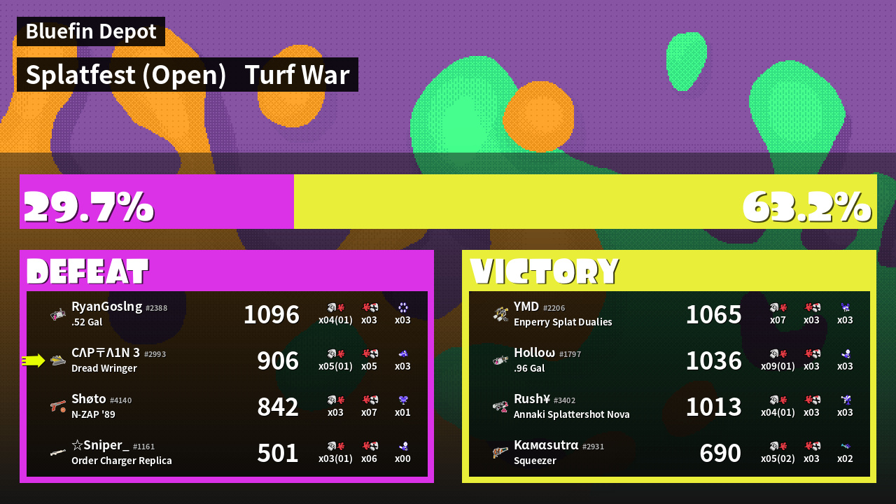 | Medals | #1 Overall Splatter #1 Popular Target #1 Enemy-Base Inker | ||