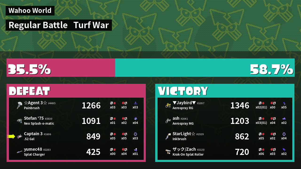 | Mode | Turf War - Regular Battle | ||