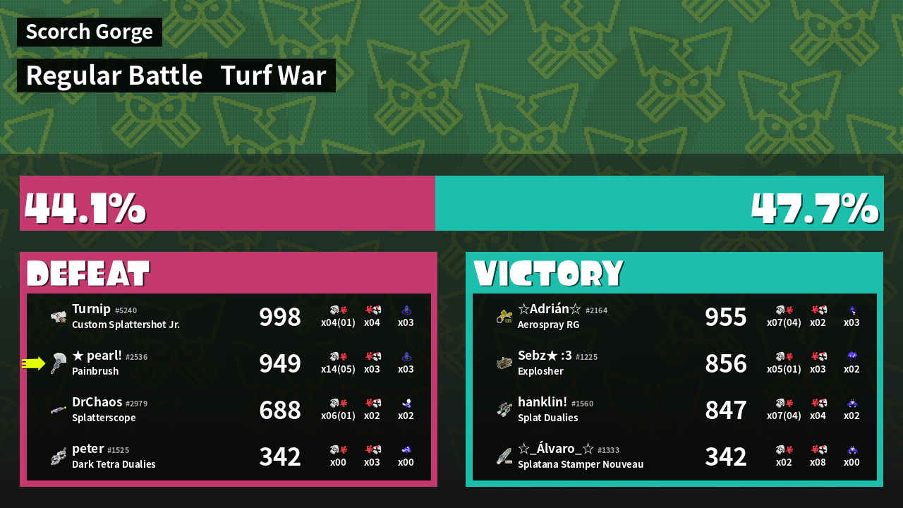 | Mode | Turf War - Regular Battle | ||
