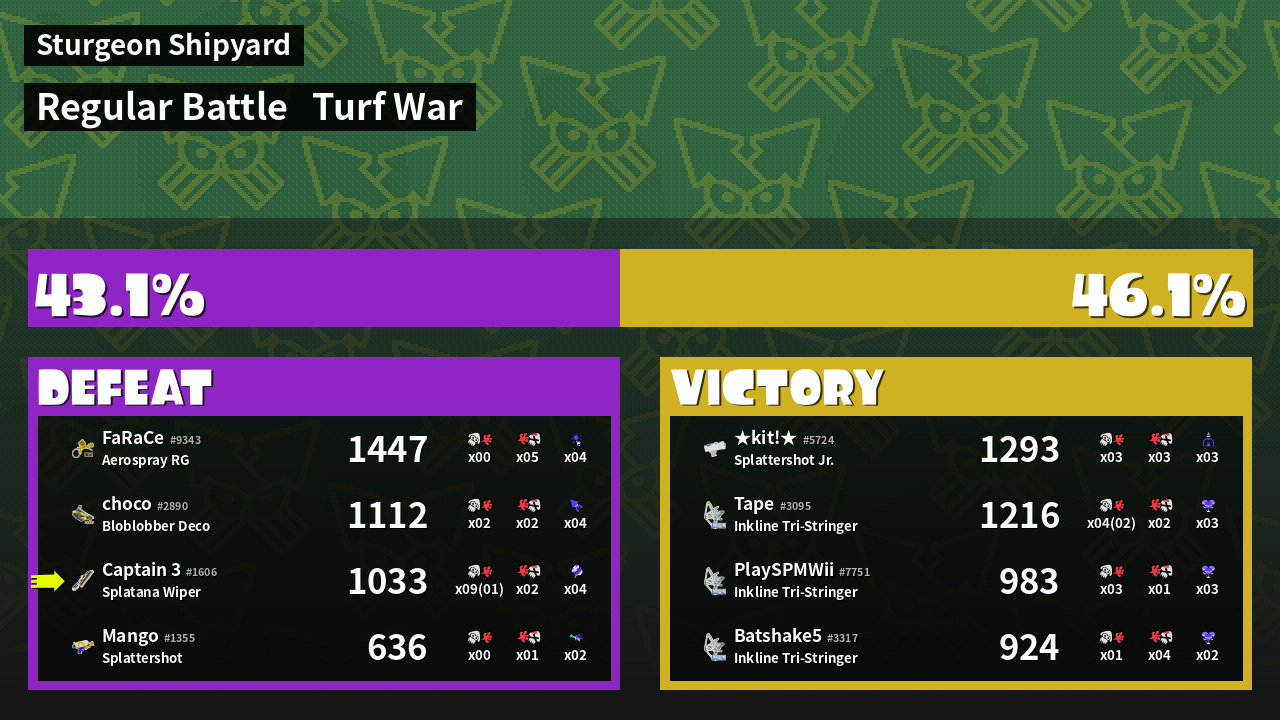 | Medals | #1 Overall Splatter #1 Popular Target #1 Enemy Splatter | ||