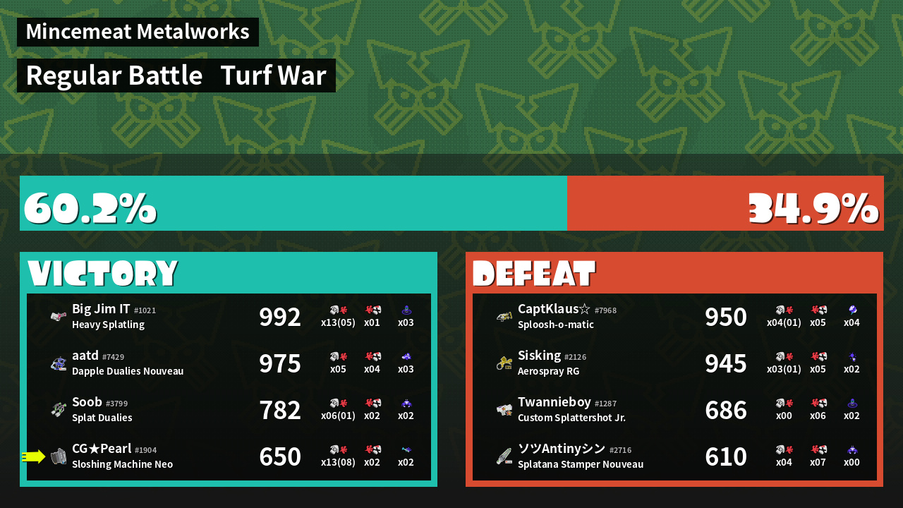 | Medals | #1 Overall Splatter #1 Splat Assister #1 Ink Consumer | ||