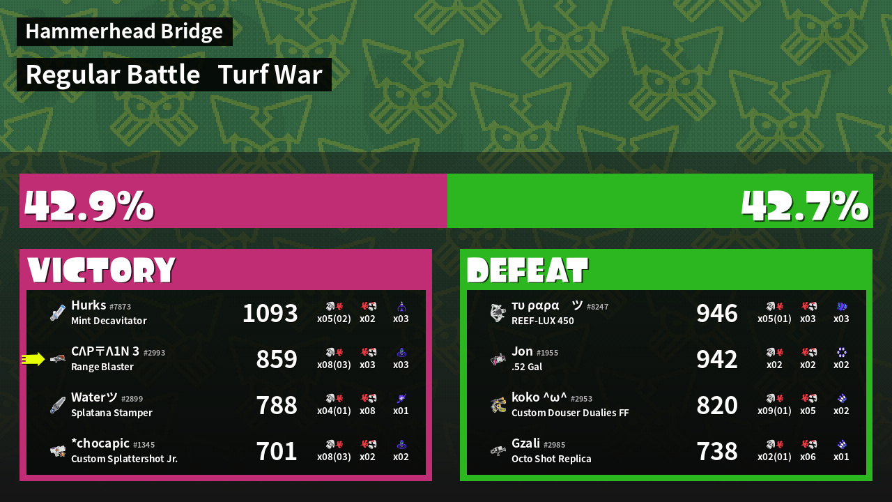 | Medals | #1 Overall Splatter #1 Popular Target #1 Enemy Splatter | ||