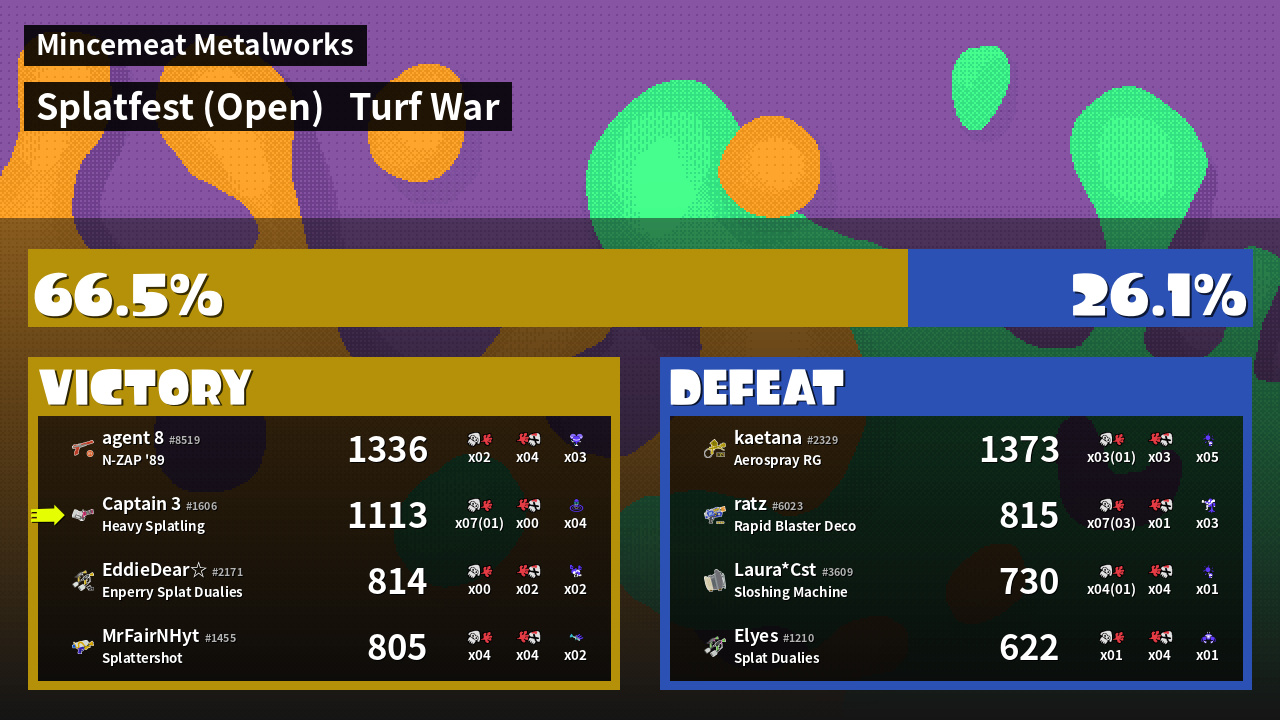 | Medals | #1 Overall Splatter #1 Popular Target #1 Enemy Splatter | ||
