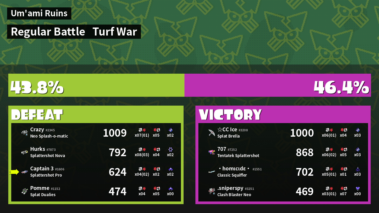 | Mode | Turf War - Regular Battle | ||