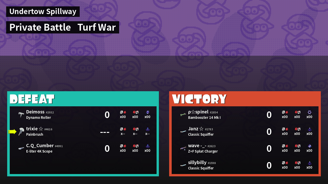 | Weapon | Painbrush ( Curling Bomb / Wave Breaker) | ||