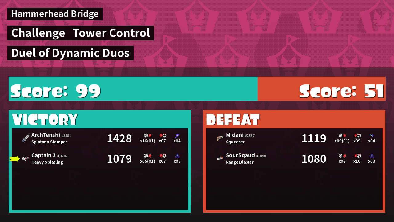 | Medals | #1 Score Booster #1 Super Jump Spot #1 Splat Assister | ||
