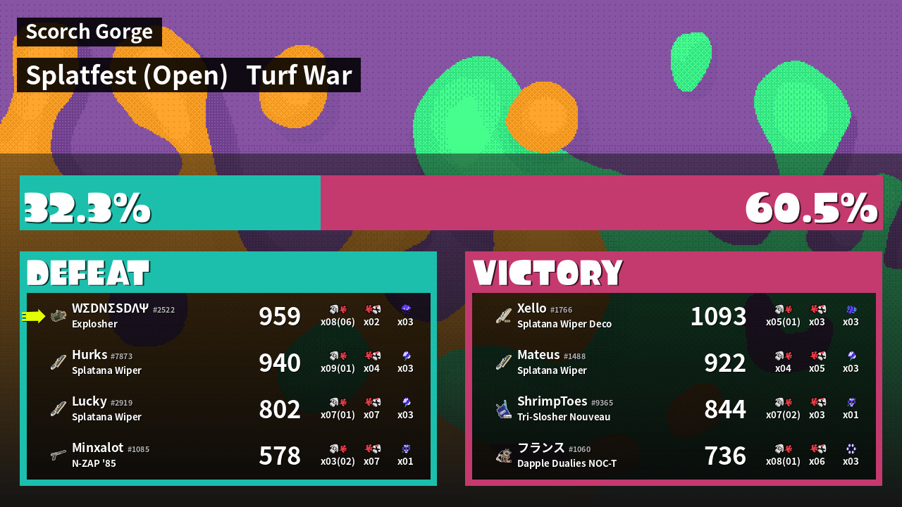 | Medals | #1 Turf Inker #1 Super Jump Spot #1 Splat Assister | ||