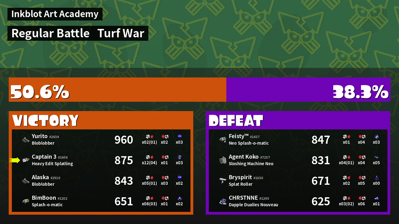 | Medals | #1 Overall Splatter #1 Enemy Splatter #1 Splat Assister | ||