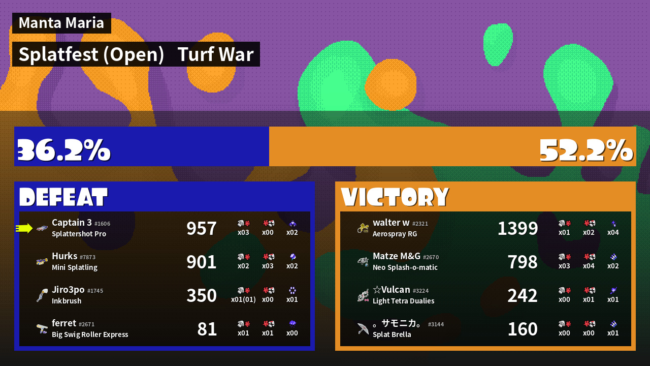 | Medals | #1 Overall Splatter #1 Turf Inker #1 Enemy-Base Inker | ||