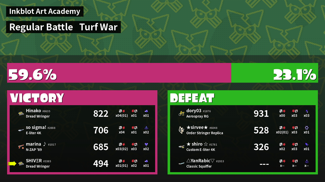 | Medals | #1 Home-Base Inker #2 Popular Target #2 Splat Assister | ||