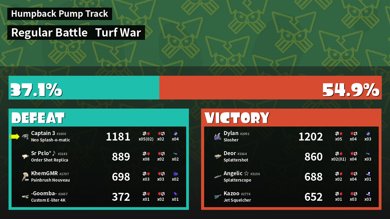 | Mode | Turf War - Regular Battle | ||