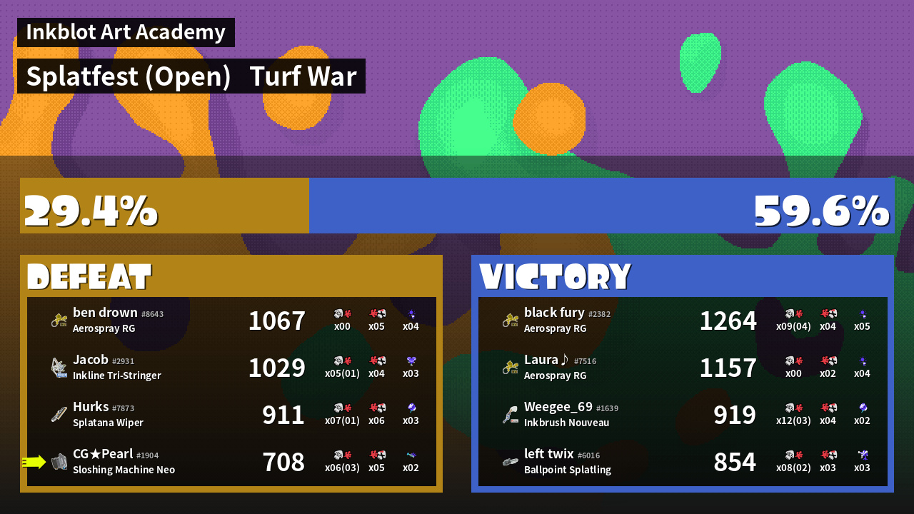 | Medals | #1 Splat Assister #1 Ink Consumer #2 Overall Splatter | ||