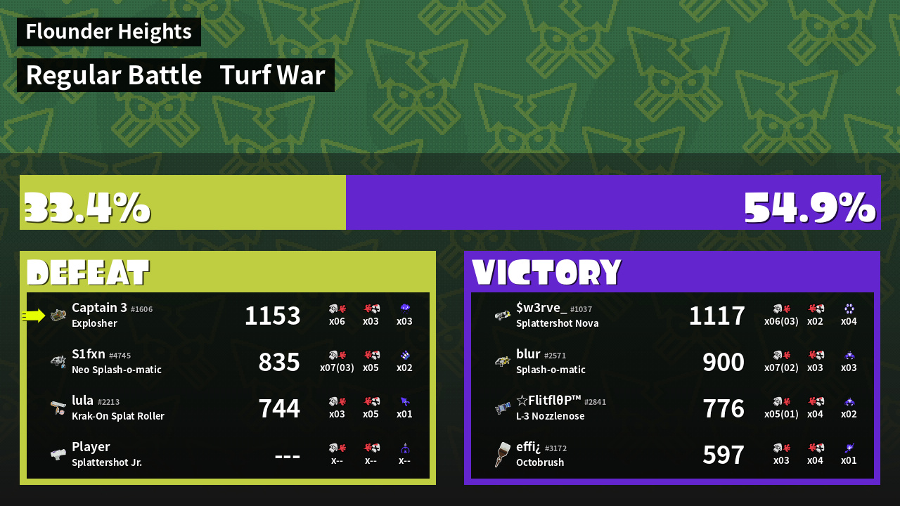 | Mode | Turf War - Regular Battle | ||