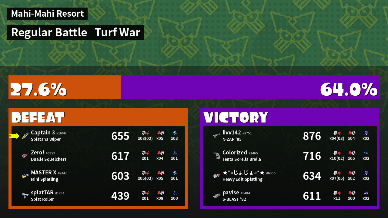 | Mode | Turf War - Regular Battle | ||
