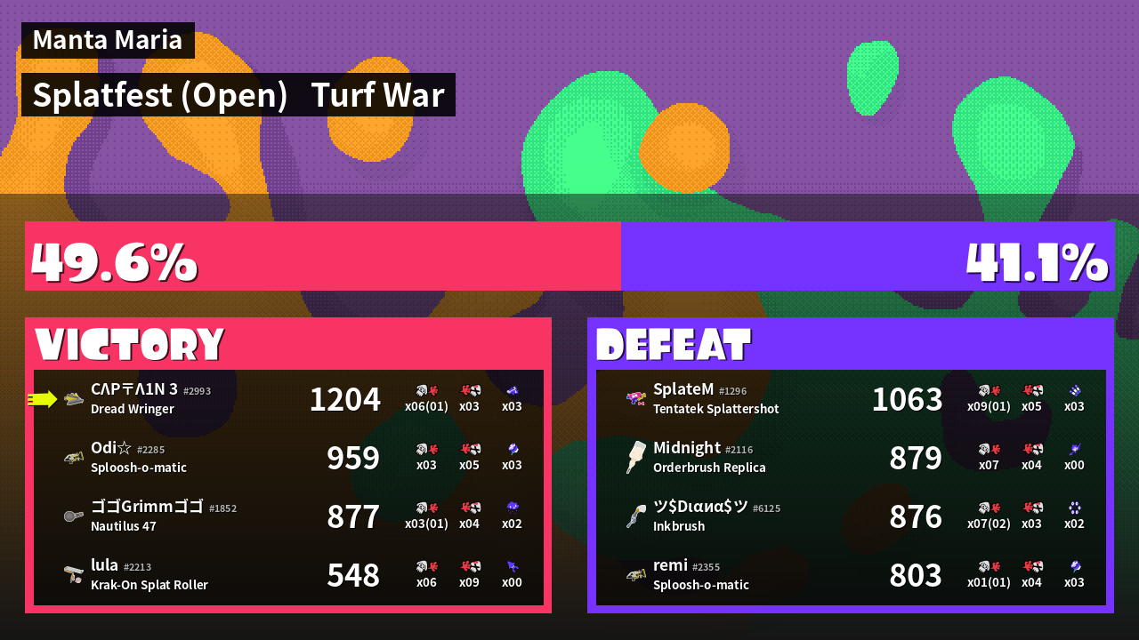 | Mode | Turf War - Splatfest (Open) | ||