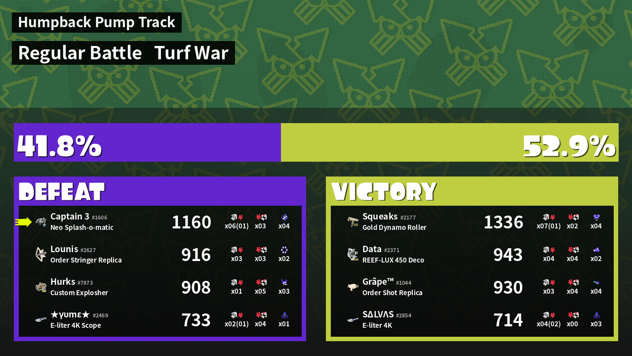 | Mode | Turf War - Regular Battle | ||