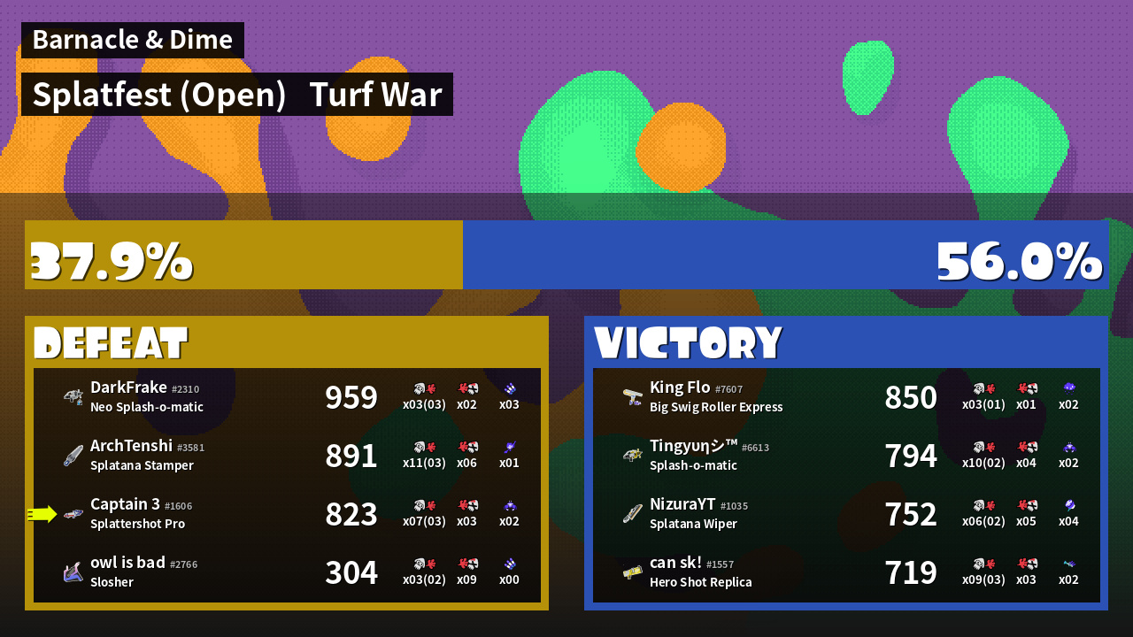 | Medals | #1 Super Jump Spot #1 Splat Assister #1 Ink Consumer | ||