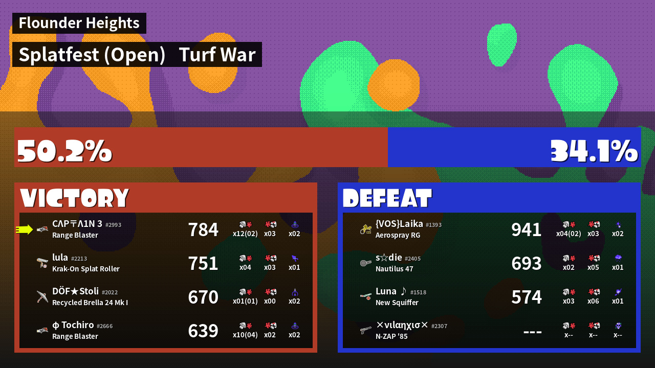 | Medals | #1 Overall Splatter #1 Turf Inker #1 Enemy Splatter | ||