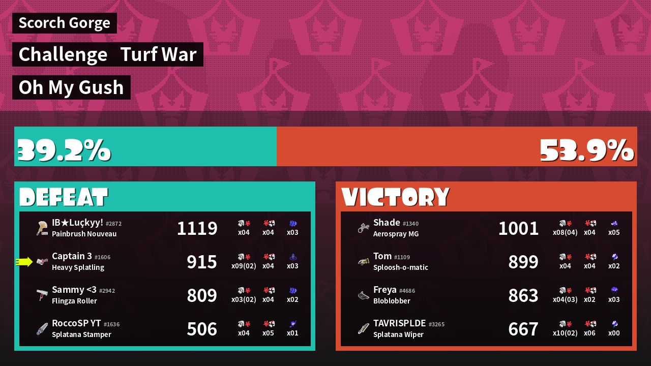 | Medals | #1 Overall Splatter #1 Enemy Splatter #1 Splat Assister | ||