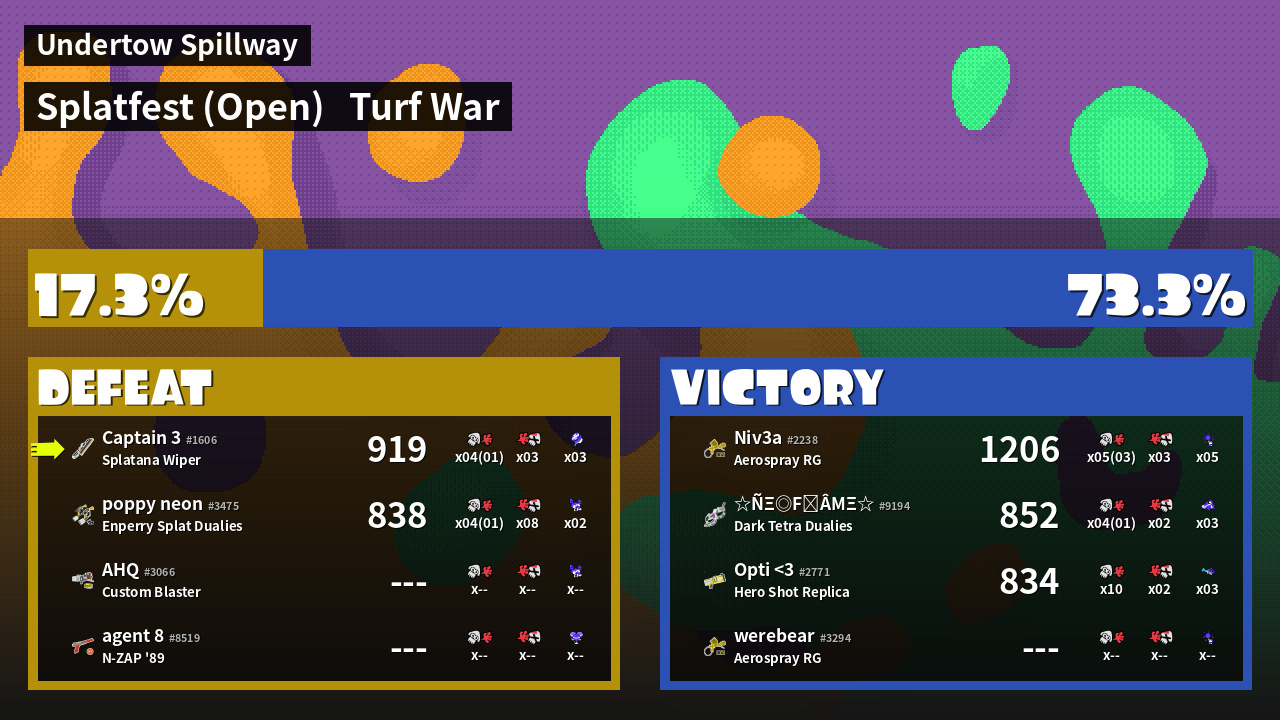 | Mode | Turf War - Splatfest (Open) | ||