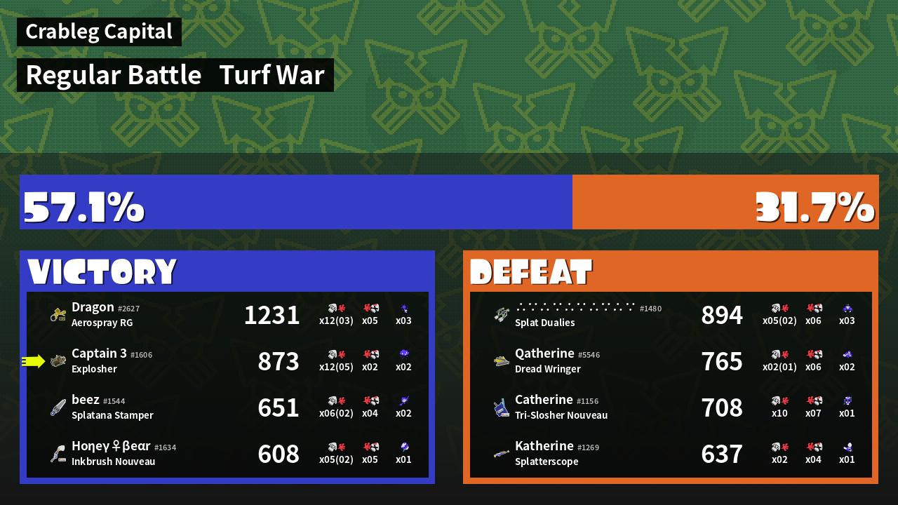 | Medals | #1 Overall Splatter #1 Popular Target #1 Splat Assister | ||