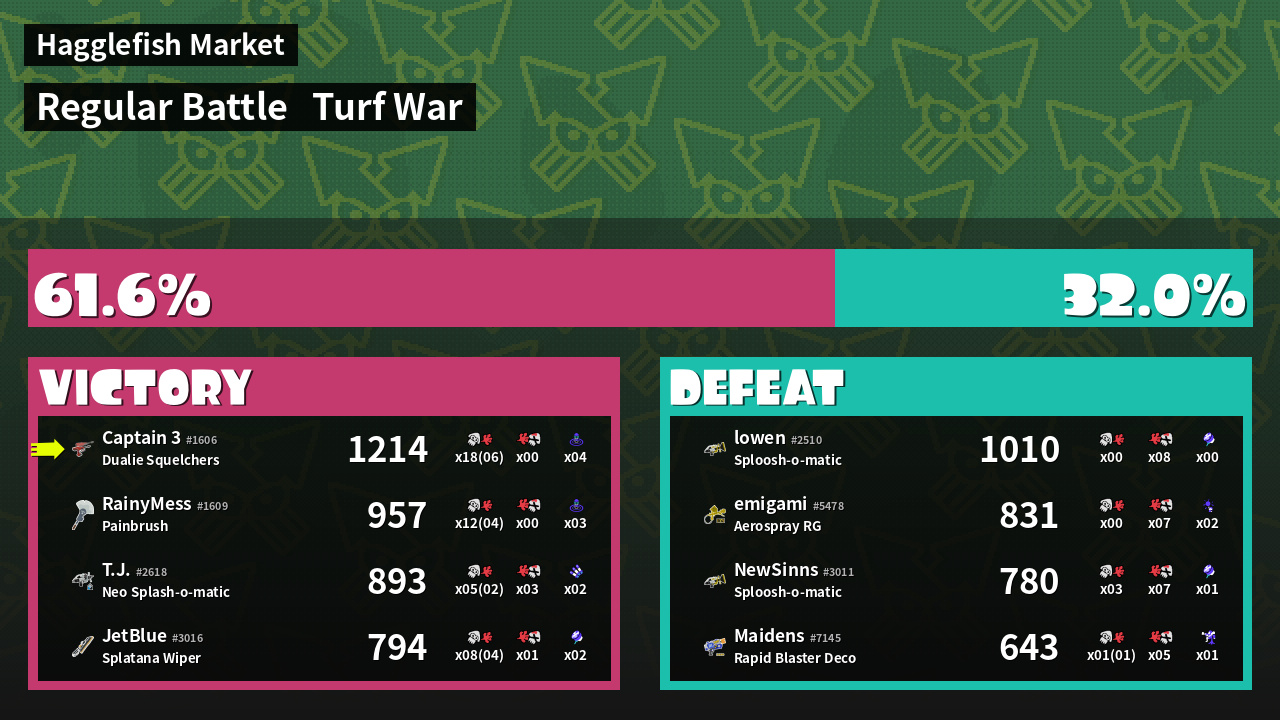 | Medals | #1 Overall Splatter #1 Turf Inker #1 Popular Target | ||