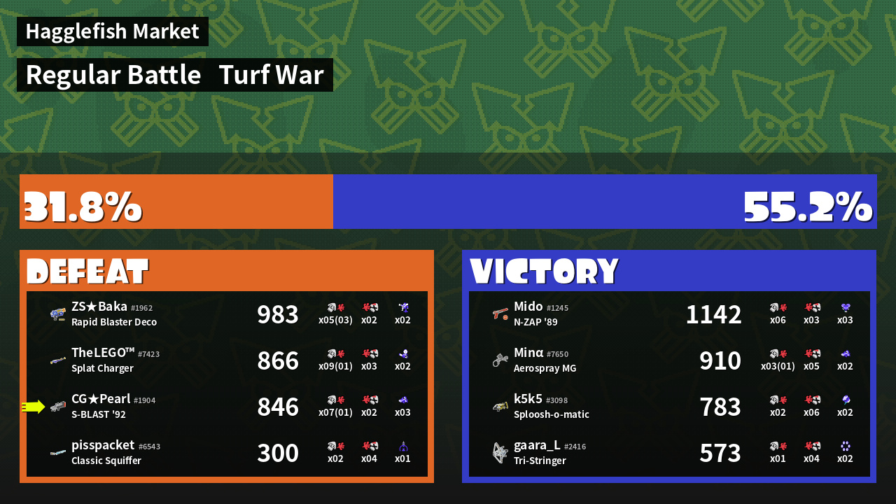 | Medals | #1 Enemy-Base Inker #1 Ground Traveler #1 Damage Taker | ||