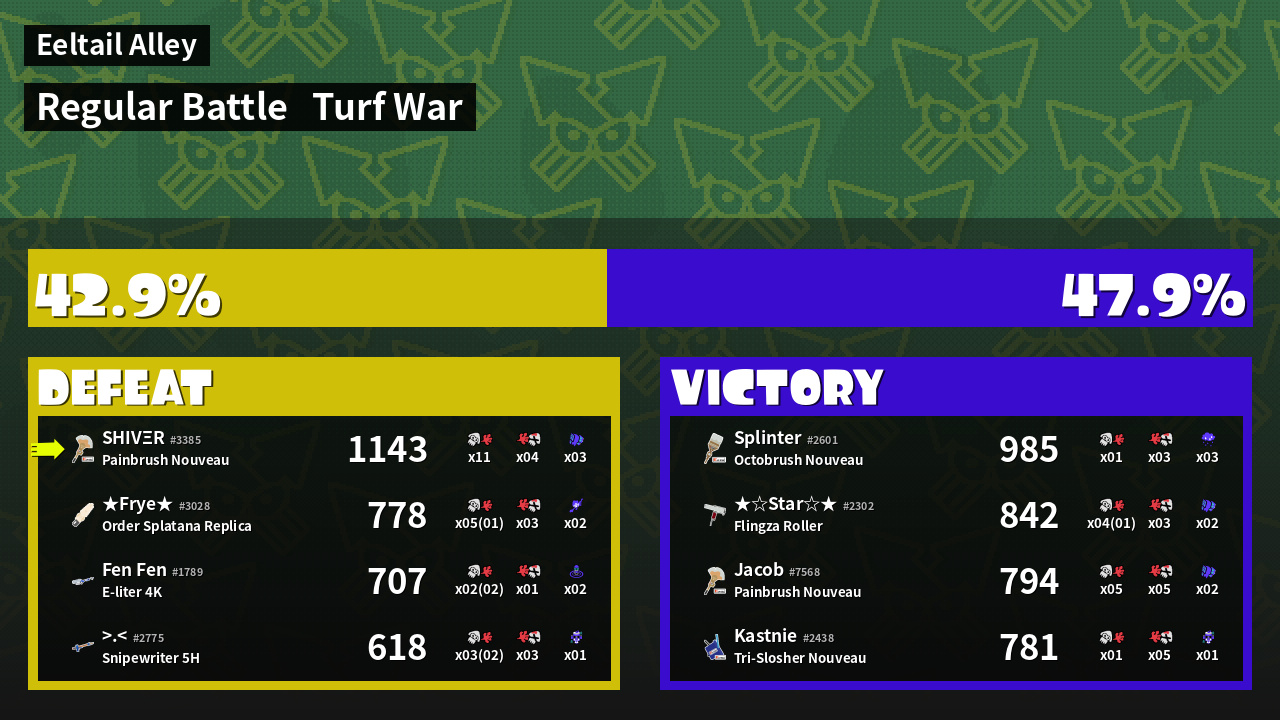 | Mode | Turf War - Regular Battle | ||