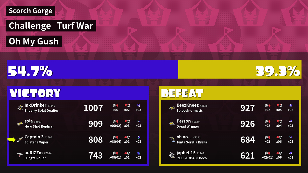 | Medals | #1 Overall Splatter #1 Splat Assister #1 Damage Taker | ||