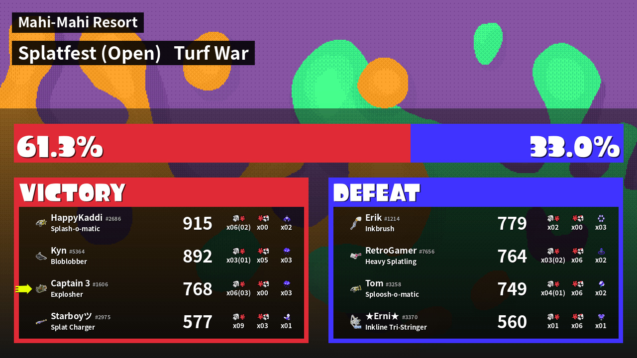 | Medals | #1 Super Jump Spot #1 Splat Assister #2 Overall Splatter | ||