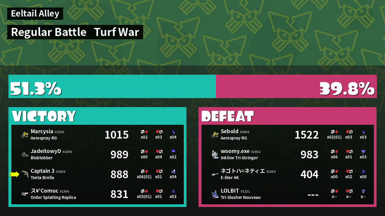 | Medals | #1 Overall Splatter #1 Popular Target #1 Enemy-Base Inker | ||