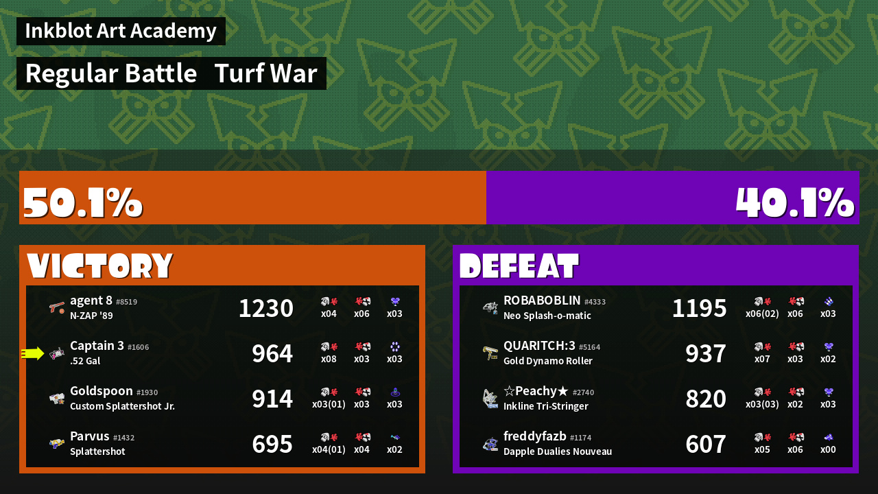 | Medals | #1 Overall Splatter #1 Popular Target #1 Enemy Splatter | ||