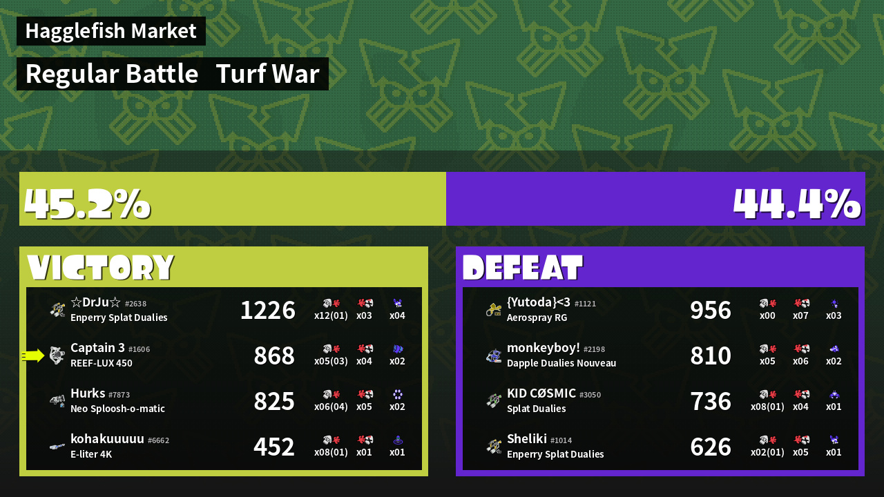 | Mode | Turf War - Regular Battle | ||