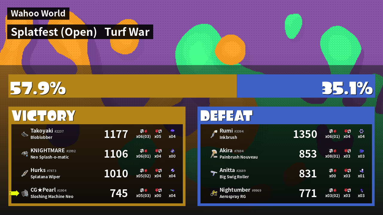 | Medals | #1 Popular Target #1 Super Jump Spot #1 Splat Assister | ||