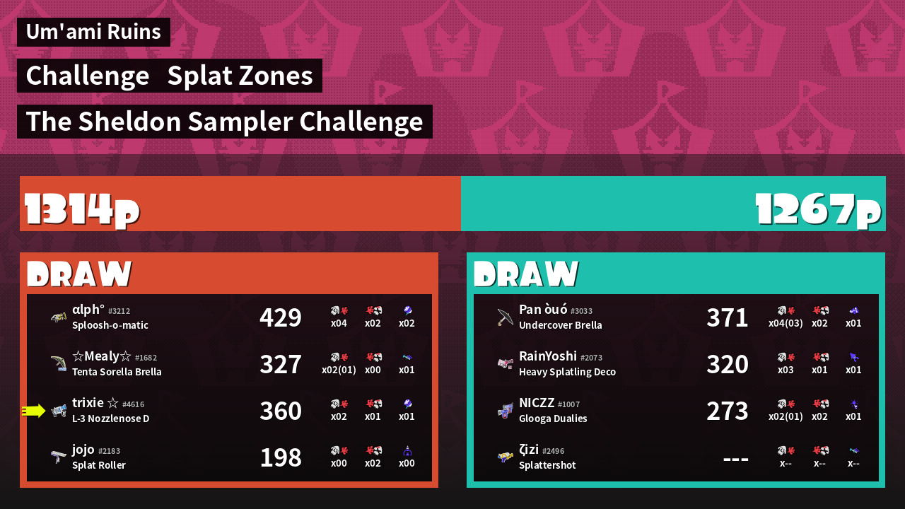 | Challenge | The Sheldon Sampler Challenge Make the most of random weapons! | ||