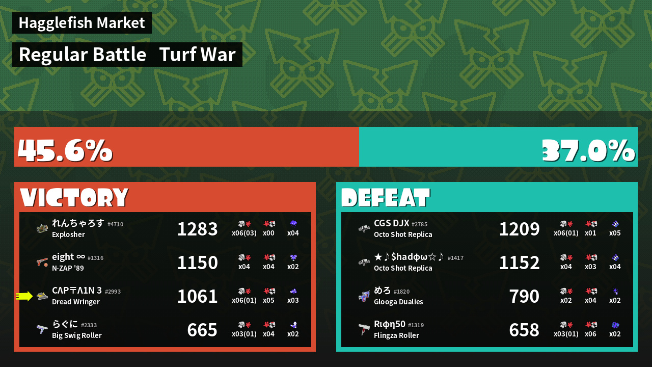 | Medals | #1 Overall Splatter #1 Home-Base Inker #1 Enemy Splatter | ||