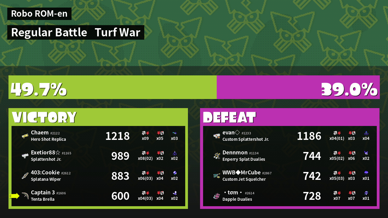 | Medals | #1 Super Jump Spot #1 Splat Assister #1 Ink Vac User | ||
