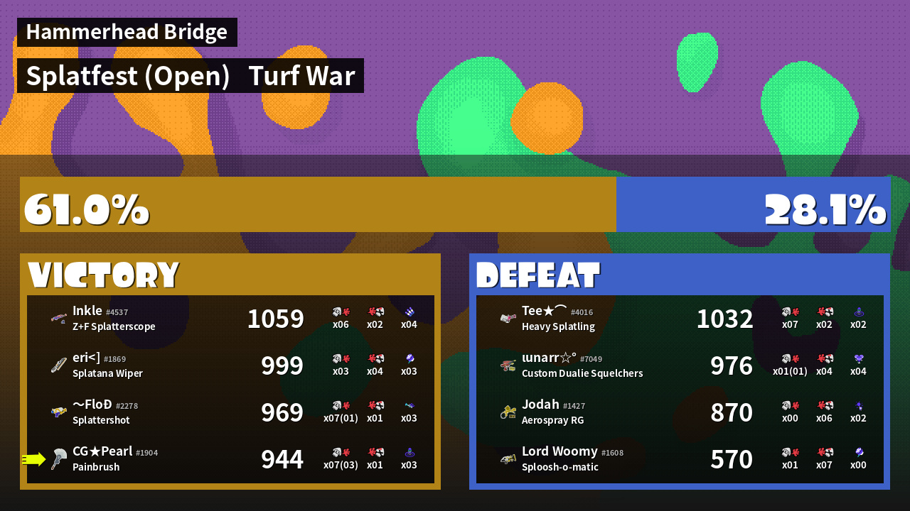 | Medals | #1 Overall Splatter #1 Home-Base Inker #1 Super Jump Spot | ||