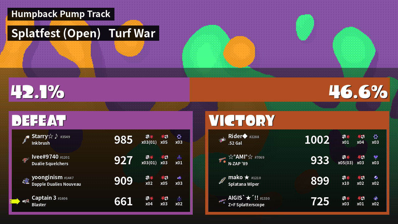 | Medals | #1 Overall Splatter #1 Super Jump Spot #1 Enemy Splatter | ||