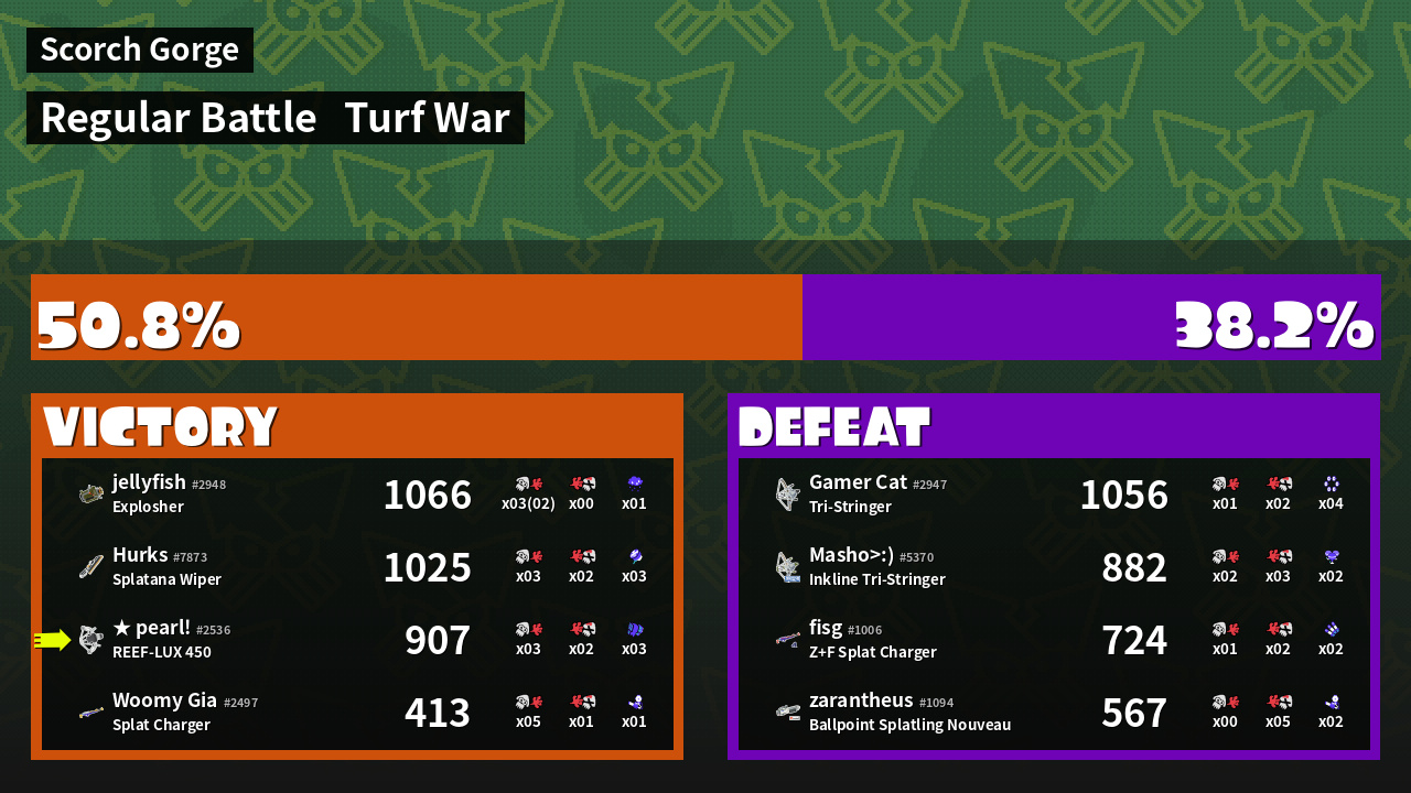 | Medals | #1 Enemy-Base Inker #1 Ink Consumer #1 Tenta Missiles User | ||