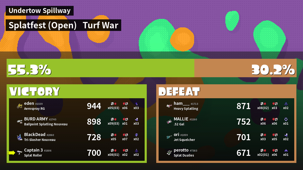| Medals | #1 Enemy-Base Inker #1 Super Jump Spot #1 Enemy Splatter | ||